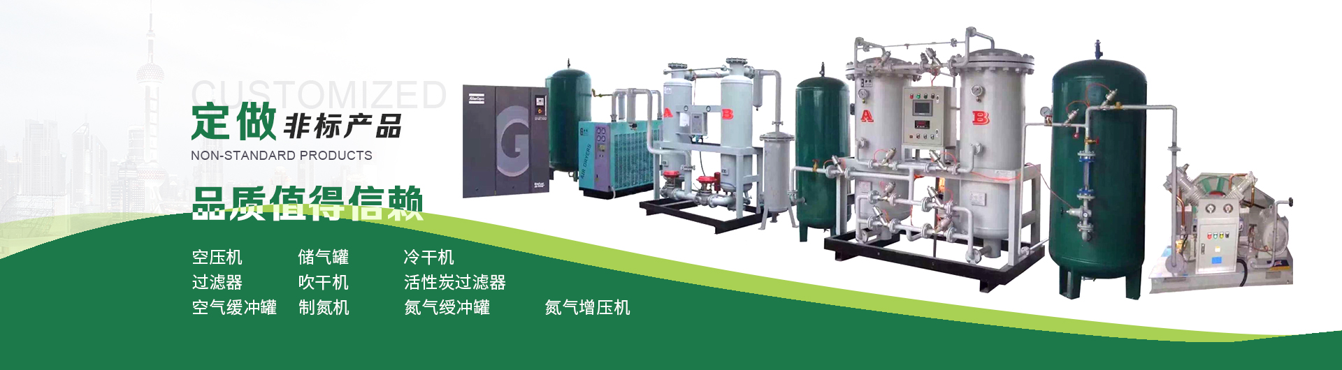 本企業(yè)產(chǎn)品有眾多產(chǎn)品分類,儲(chǔ)氣罐、磨料桶、碳鋼儲(chǔ)氣罐、不銹鋼儲(chǔ)氣罐、中高壓儲(chǔ)氣罐、臥式儲(chǔ)氣罐、緩沖罐、隔膜罐、噴砂罐、分氣缸、以及其他的定做非標(biāo)產(chǎn)品等,產(chǎn)品廣泛應(yīng)用于化工、制藥、橡膠、石油、食品、機(jī)械等行業(yè)。